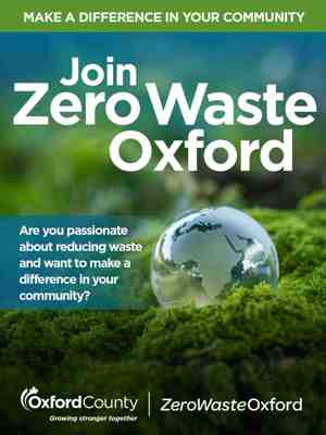 Zero Waste Oxford is seeking up to 10 new members from across Oxford County to bring forward a resident or business perspective. The group meets virtually through video conferencing on the third Wednesday of each month.