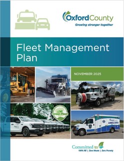 The Fleet Management Plan provides an overview of how Oxford County manages its fleet of roughly 218 vehicles, including ambulances, light-duty vehicles, heavy-duty construction equipment, tractors, snowplows and more. It acts as a guide for decision making for levels of service and lifecycle management activities, including the acquisition, operation, maintenance, renewal and disposal of the County’s fleet assets.